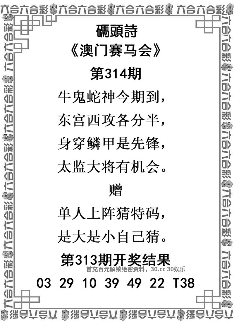314期:三头中特🔱【0头2头3头】🔱开:羊23准 |